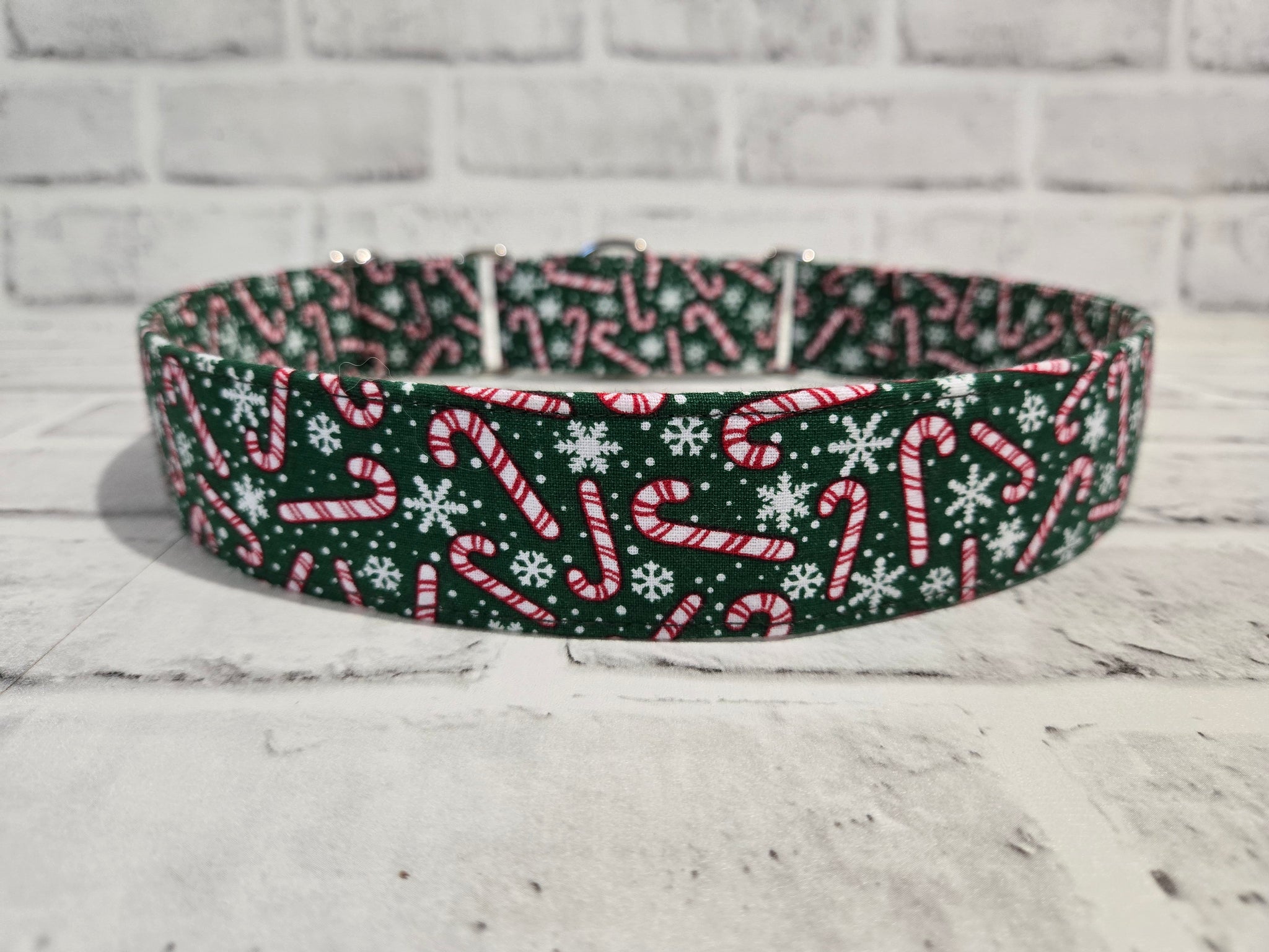 Candy Canes & Snowflakes 1.5" XL Martingale Collar 19"-28"