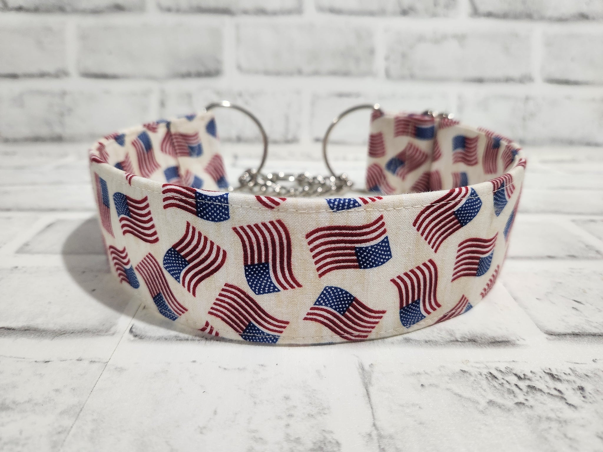American Flag 2" Large Chain Martingale Collar 17"-24"
