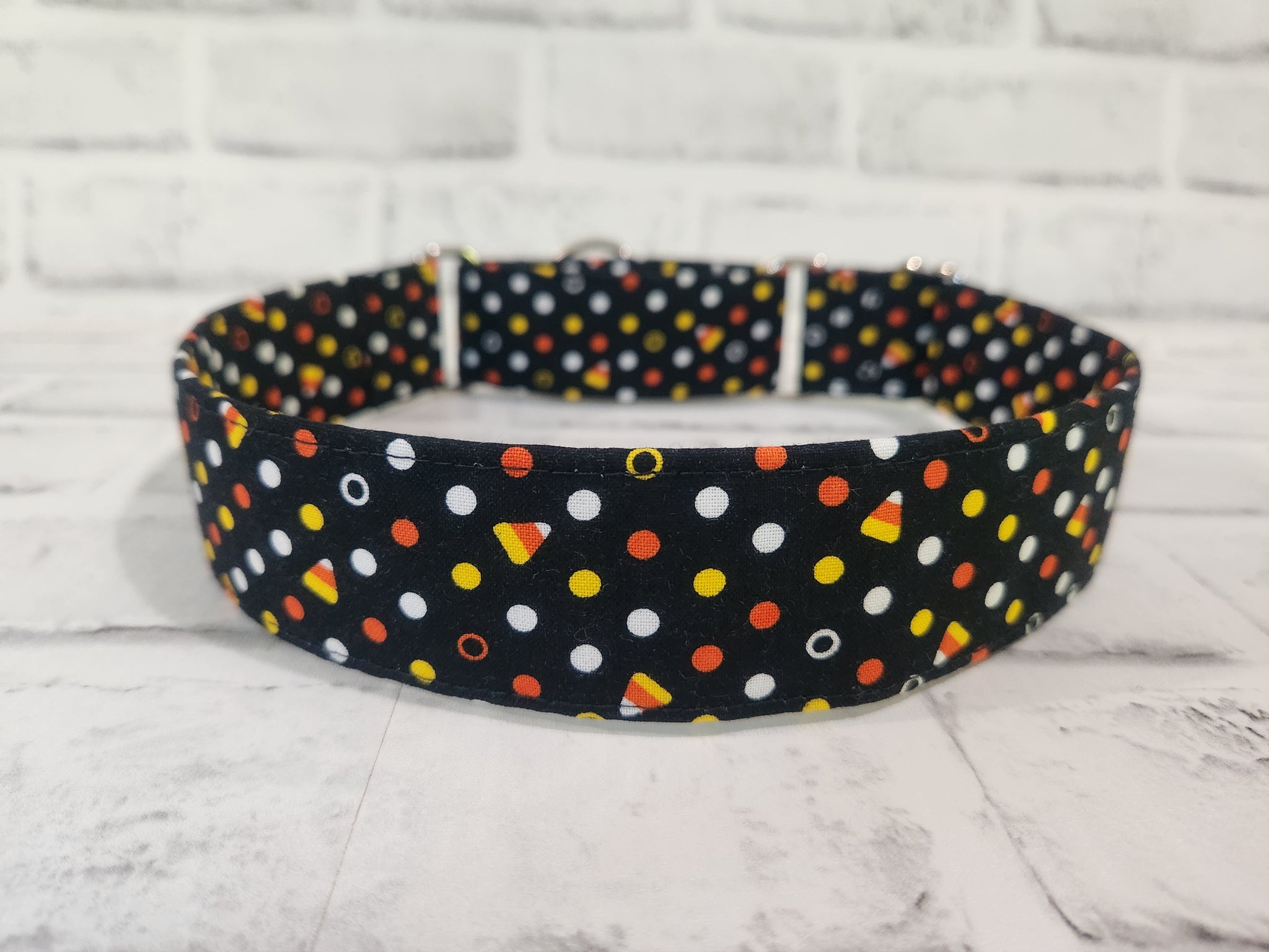 Polka Dot Candy Corn 1.5" Large Martingale Dog Collar 17"-24"