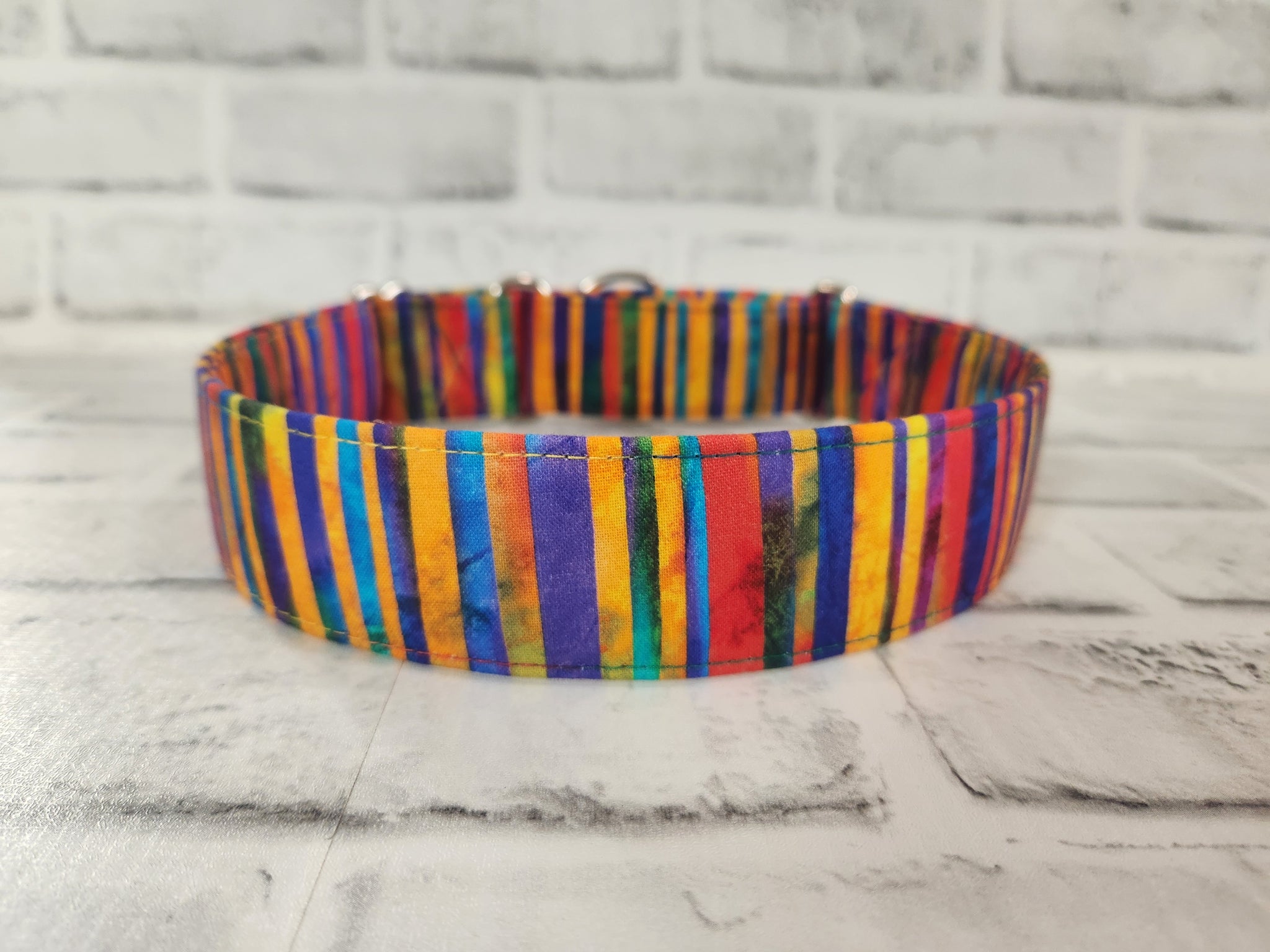 Rainbow Stripes 1.5" Large Martingale Dog Collar 17"-24"