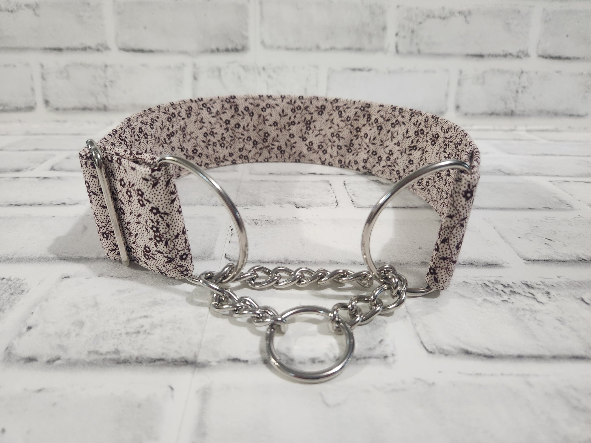 Vintage Brown Floral 2" Large Chain Martingale Collar 17"-24"