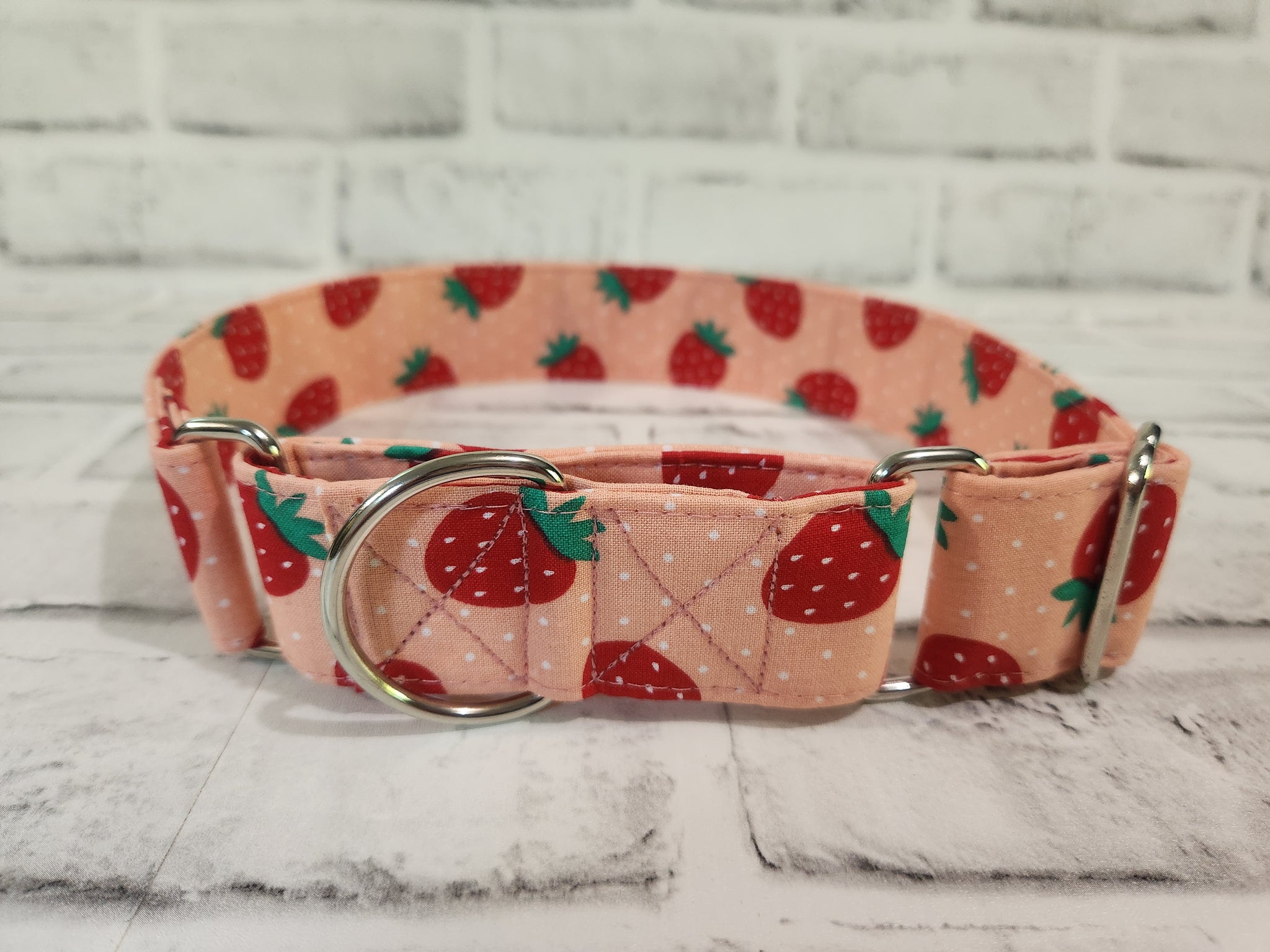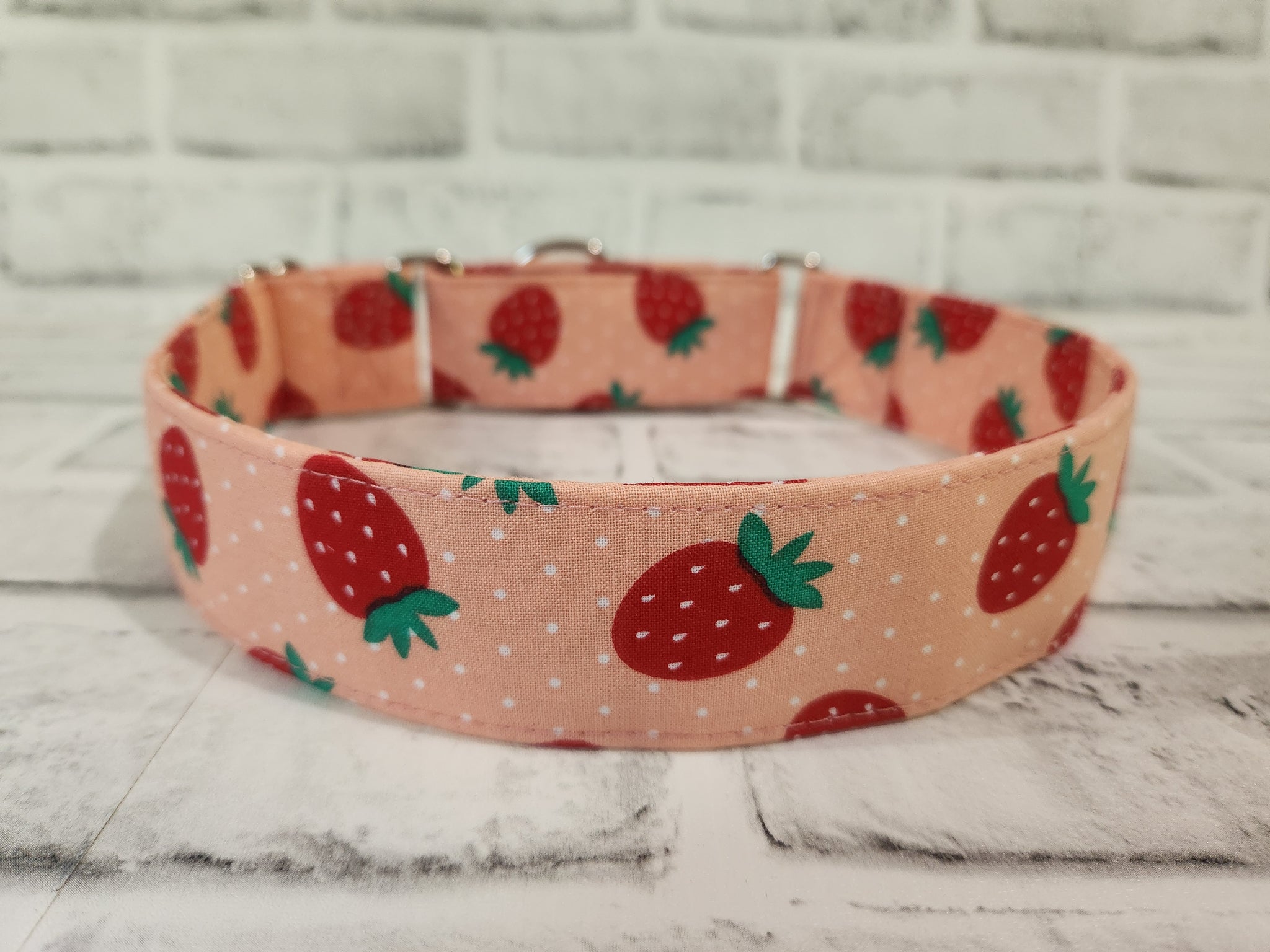 Strawberries 1.5" Large Martingale Dog Collar 17"-24"