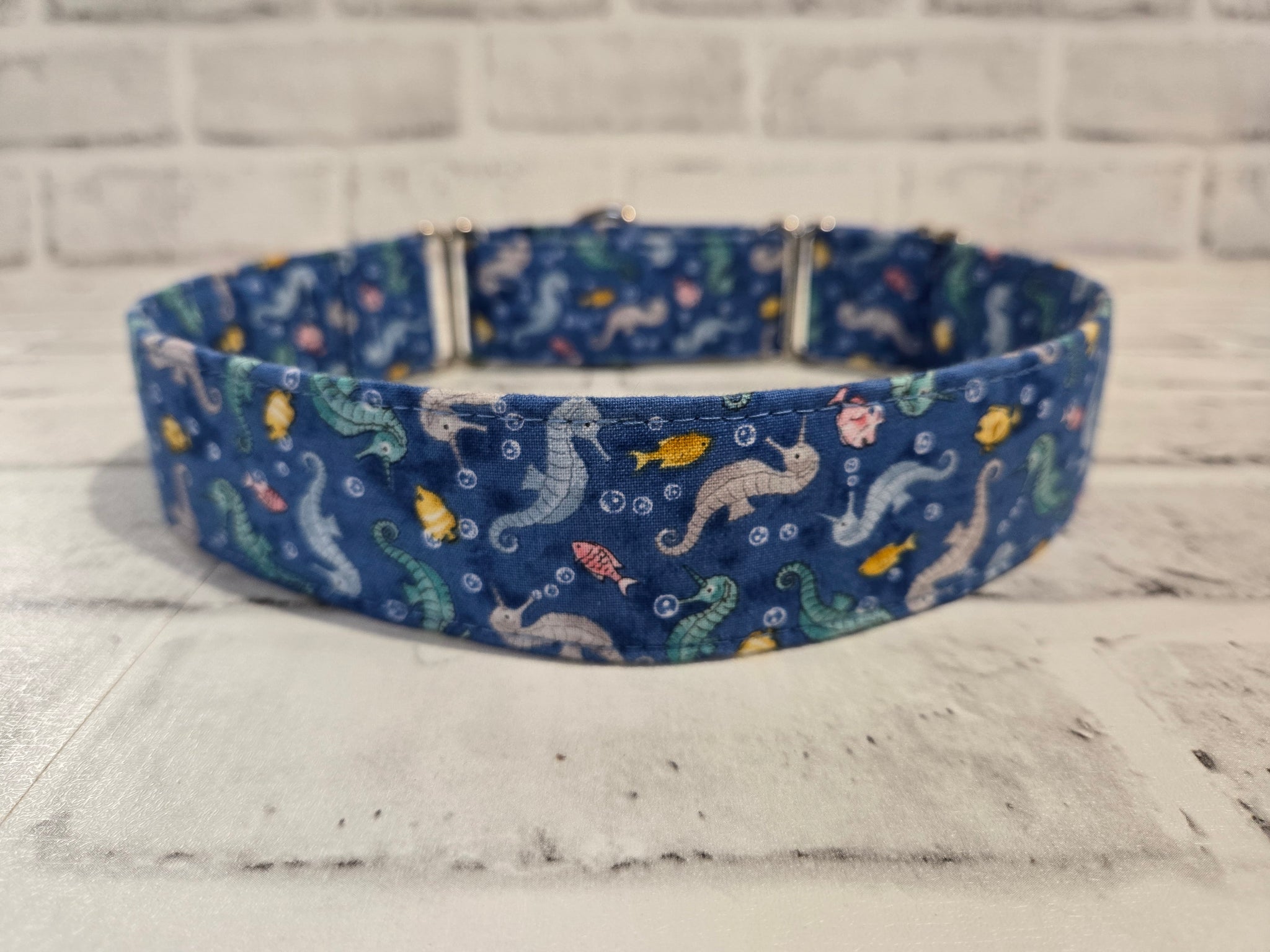 Seahorse 1.5" Large Martingale Dog Collar 17"-24"