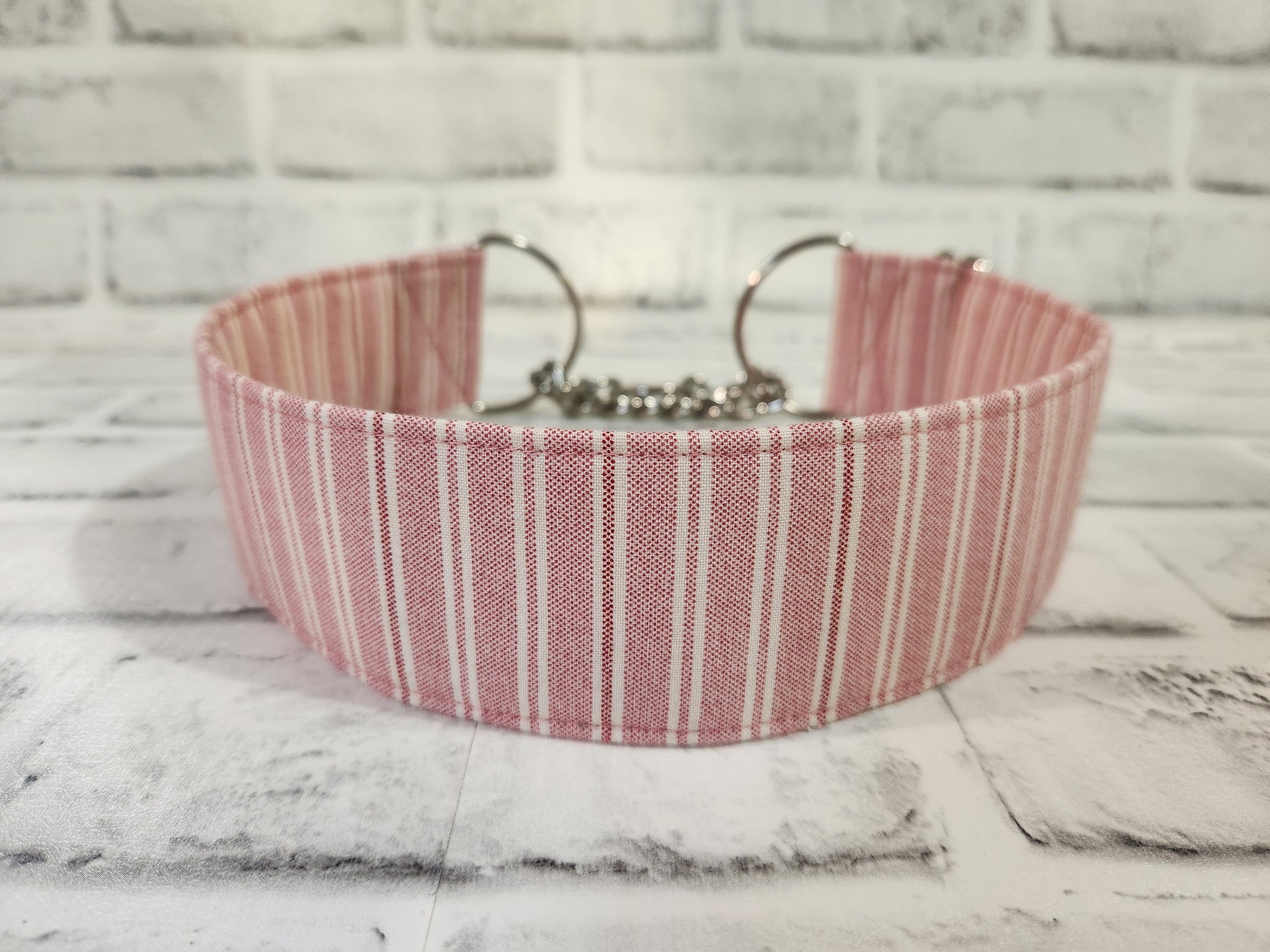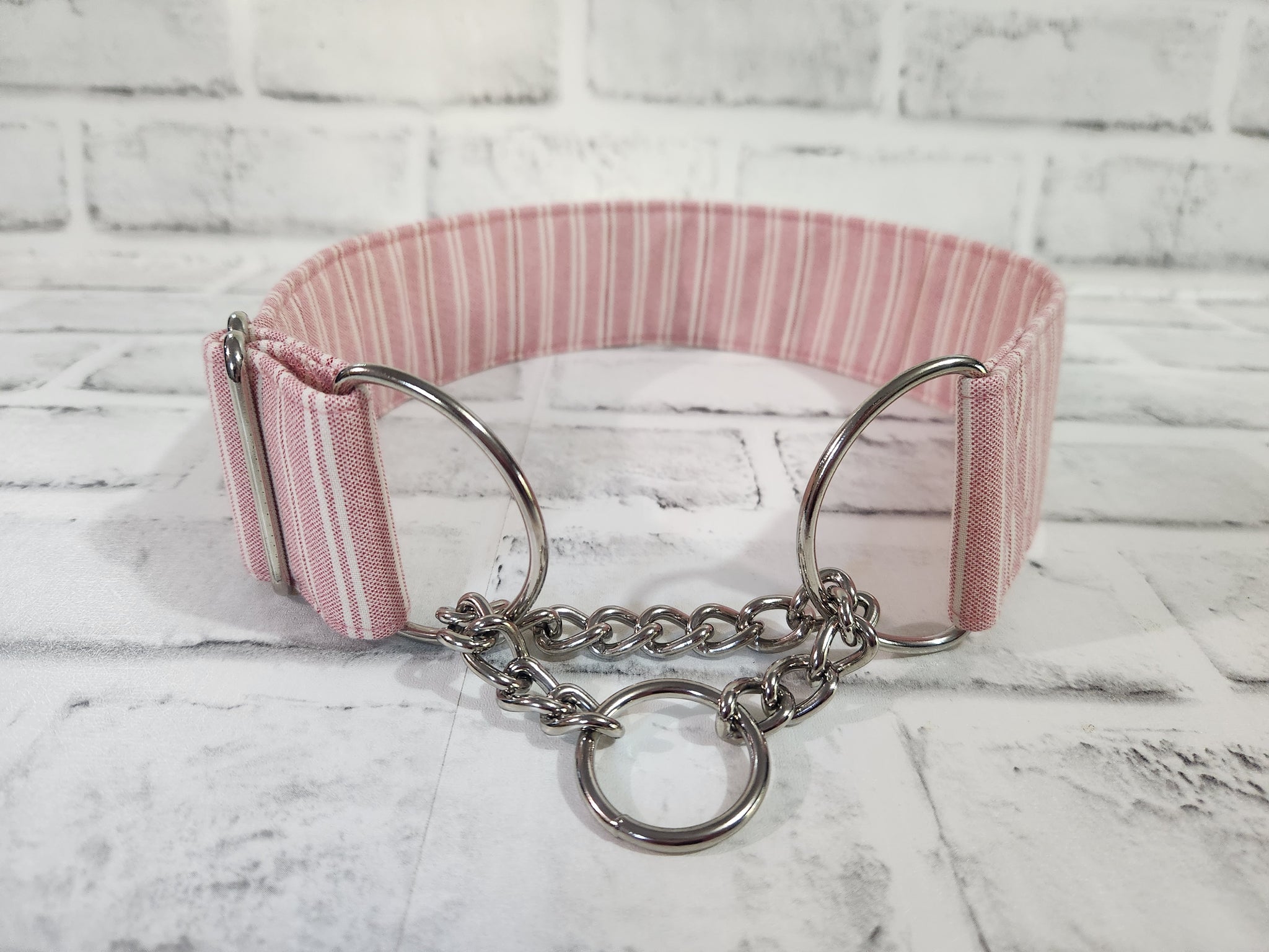 Pale Pink Stripes 2" Large Chain Martingale Collar 17"-24"