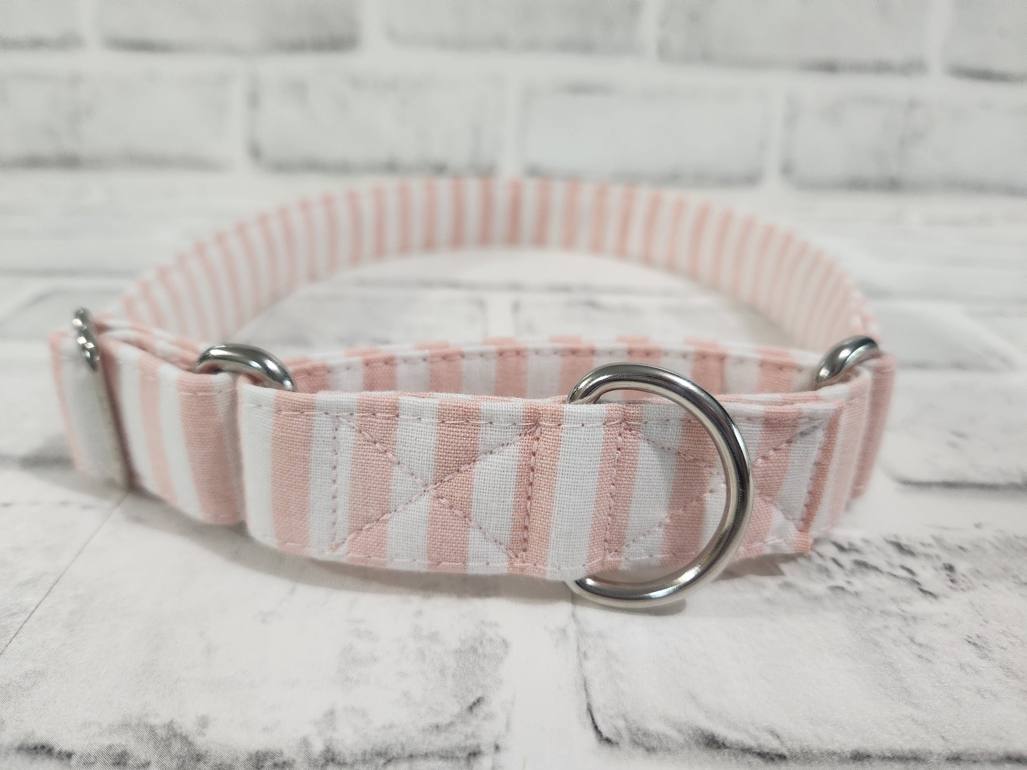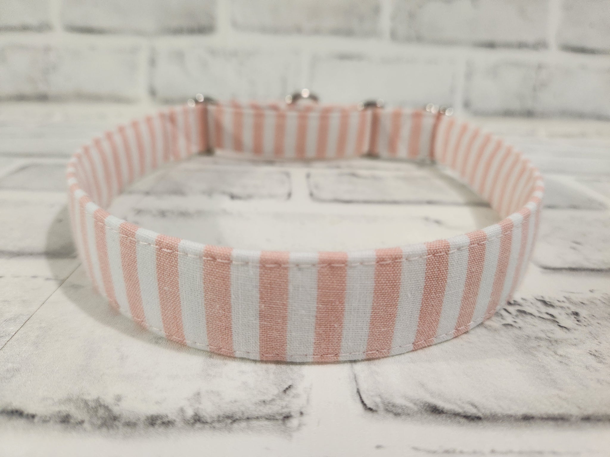 Pink and White Stripes 1" Large Martingale Collar 17"-24"
