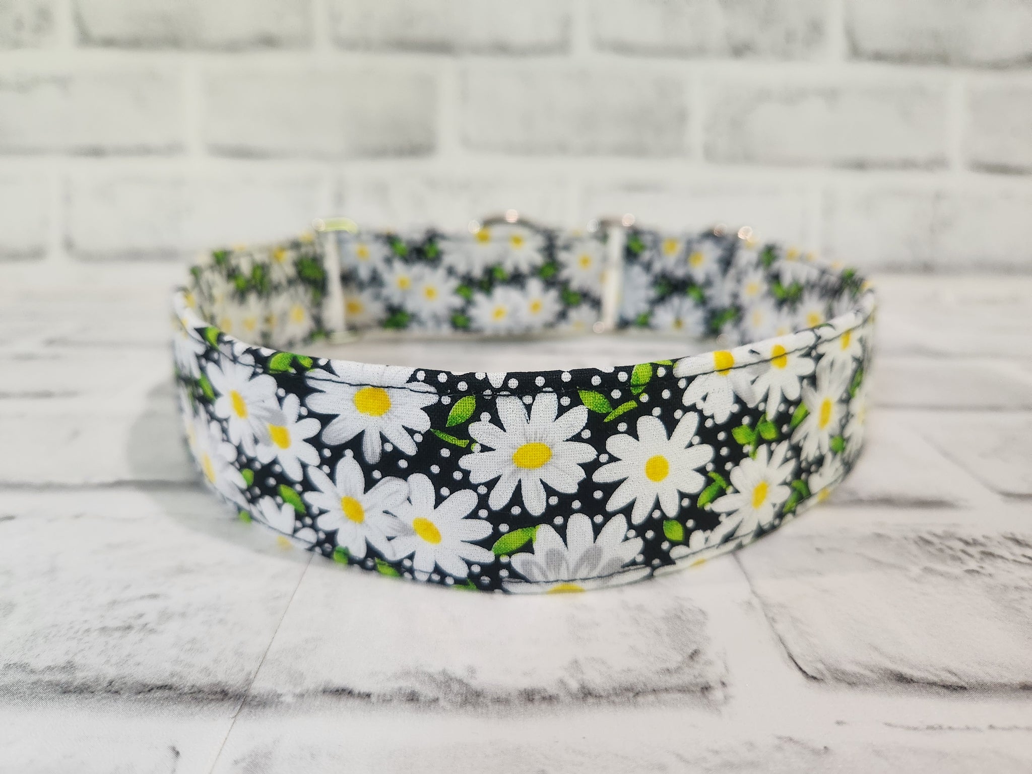 Daisy on Black 1.5" Large Martingale Dog Collar 17"-24"