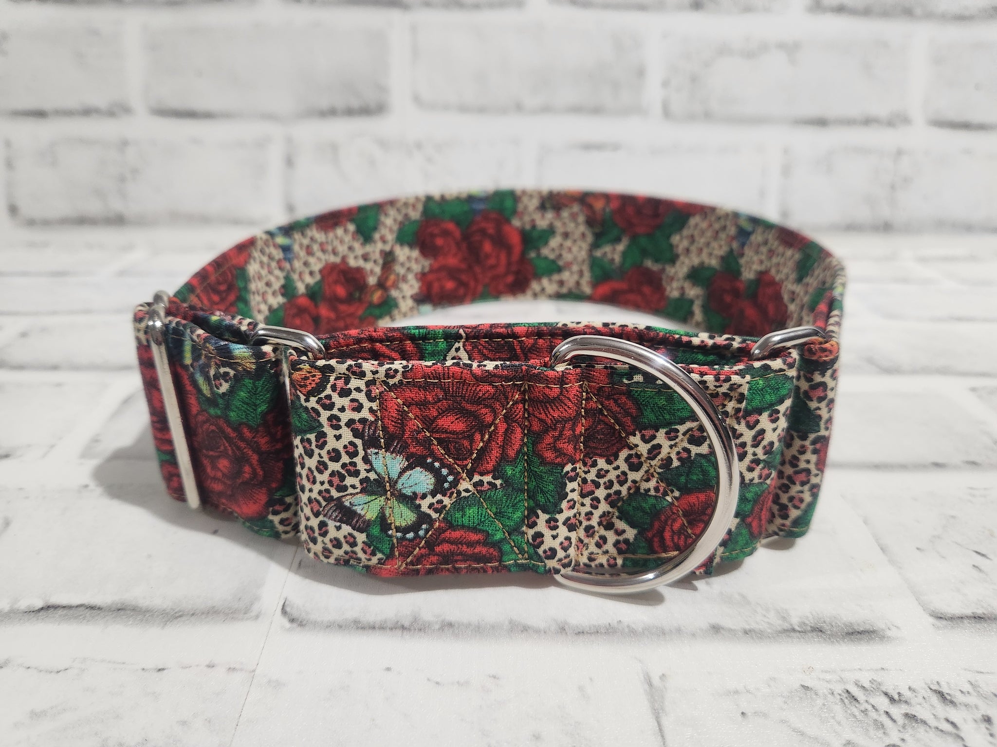 Leopard Print Roses 2" Large Martingale Dog Collar 17"-24"