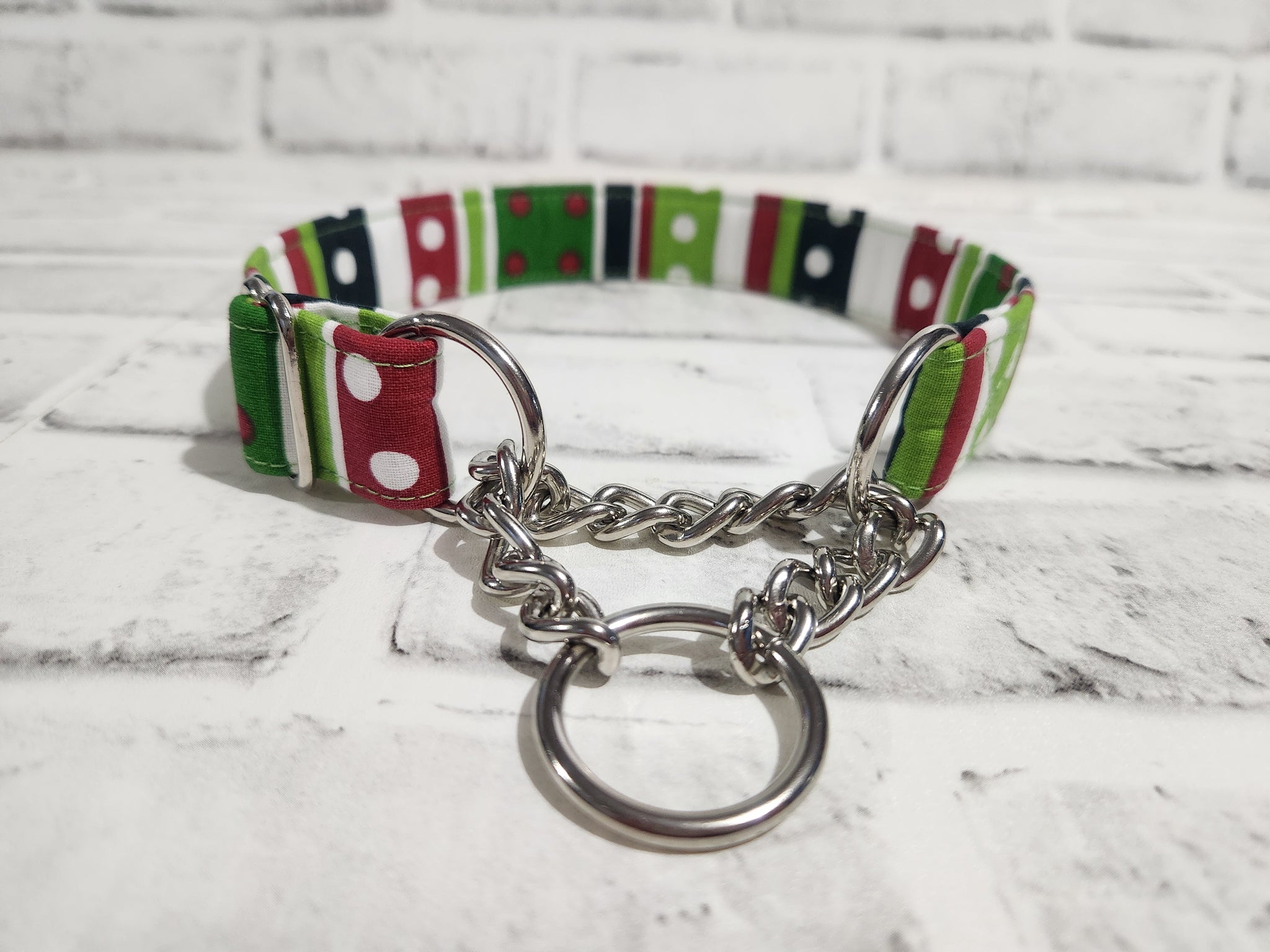Christmas Stripes and Dots 1" Medium Chain Martingale Collar 12"-19"