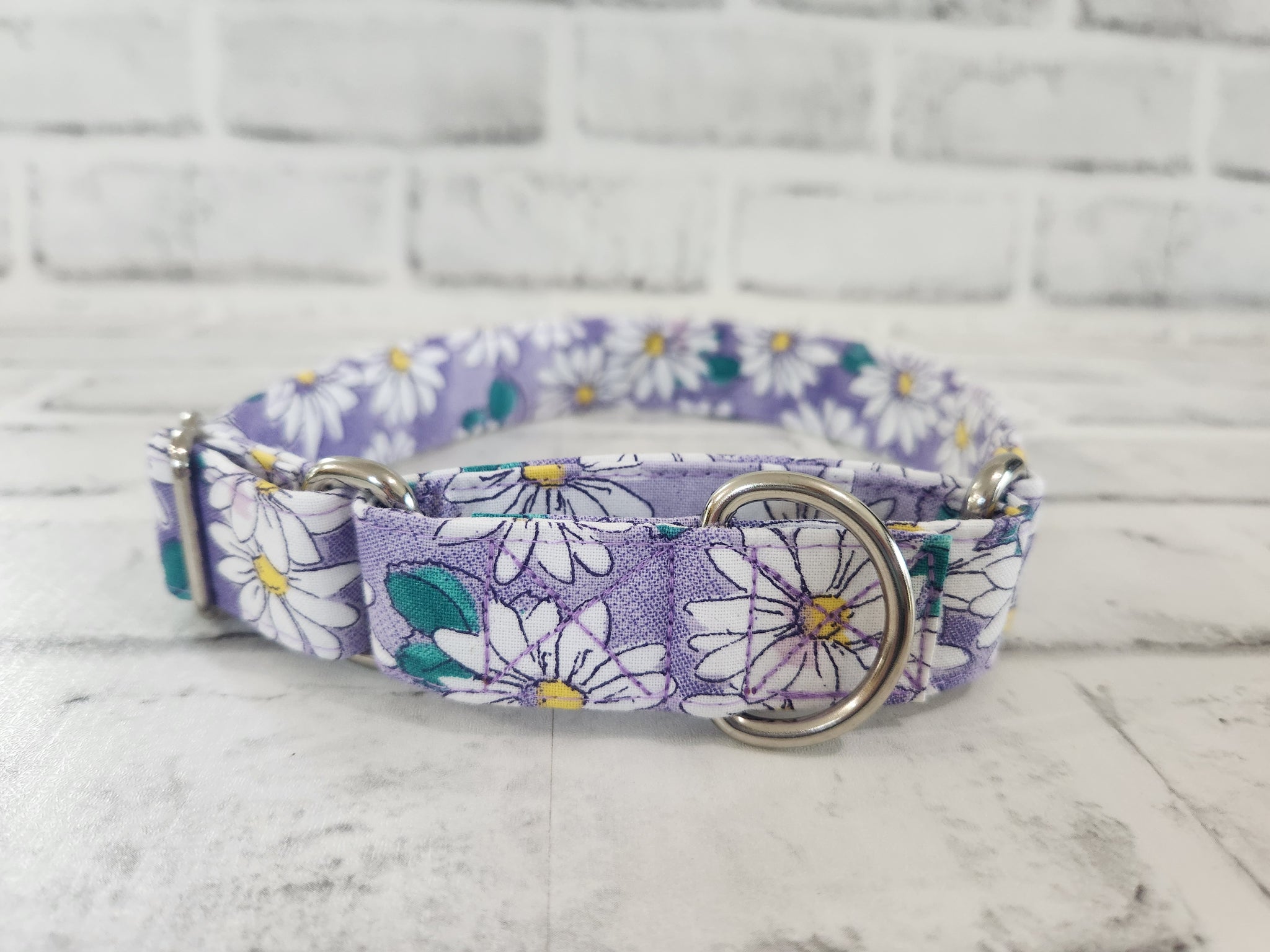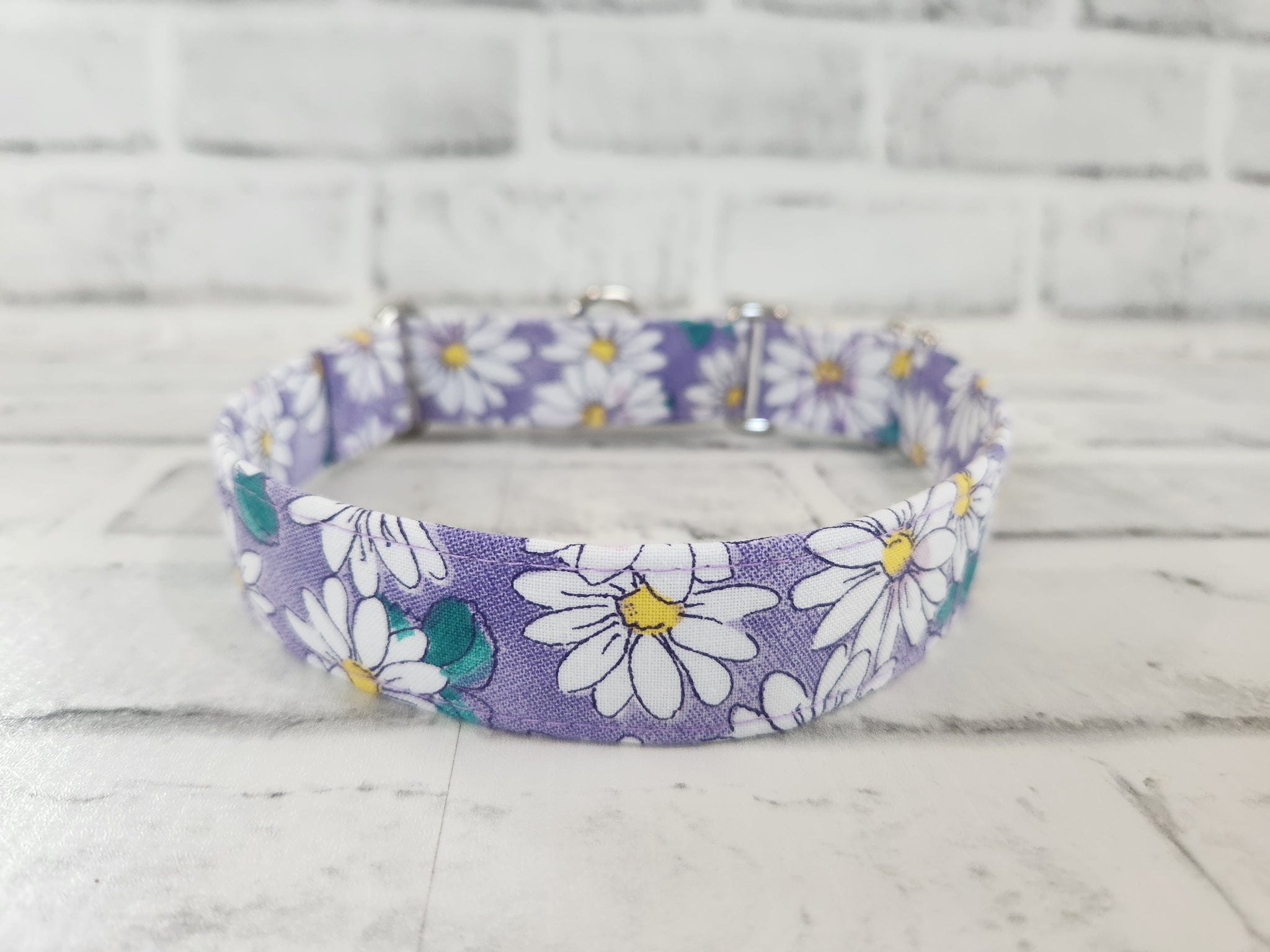 Daisies on Purple 1" Medium Martingale Collar 12"-19"