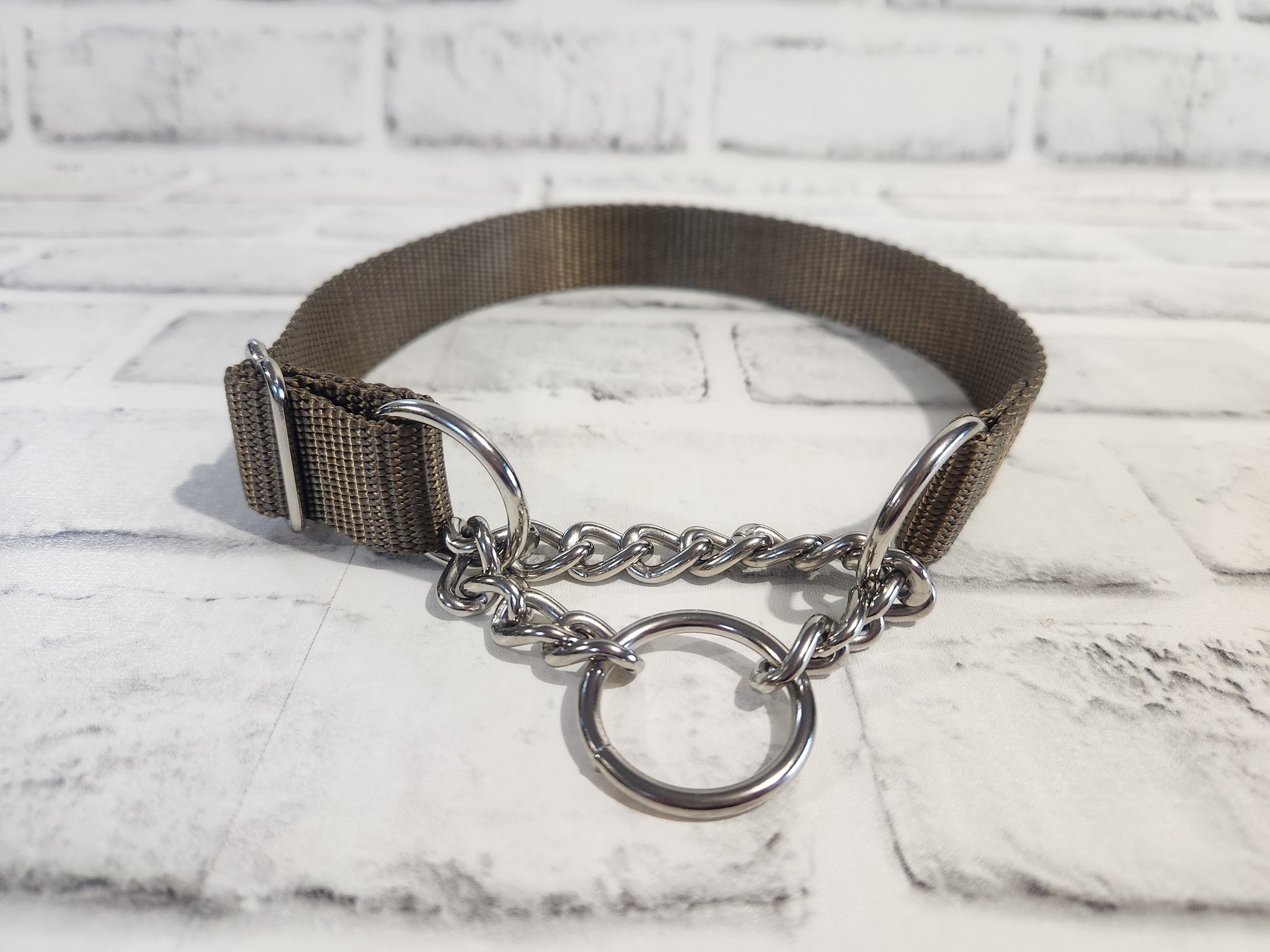 Coyote Tan 1" Medium Nylon Chain Martingale Collar 12"-19"