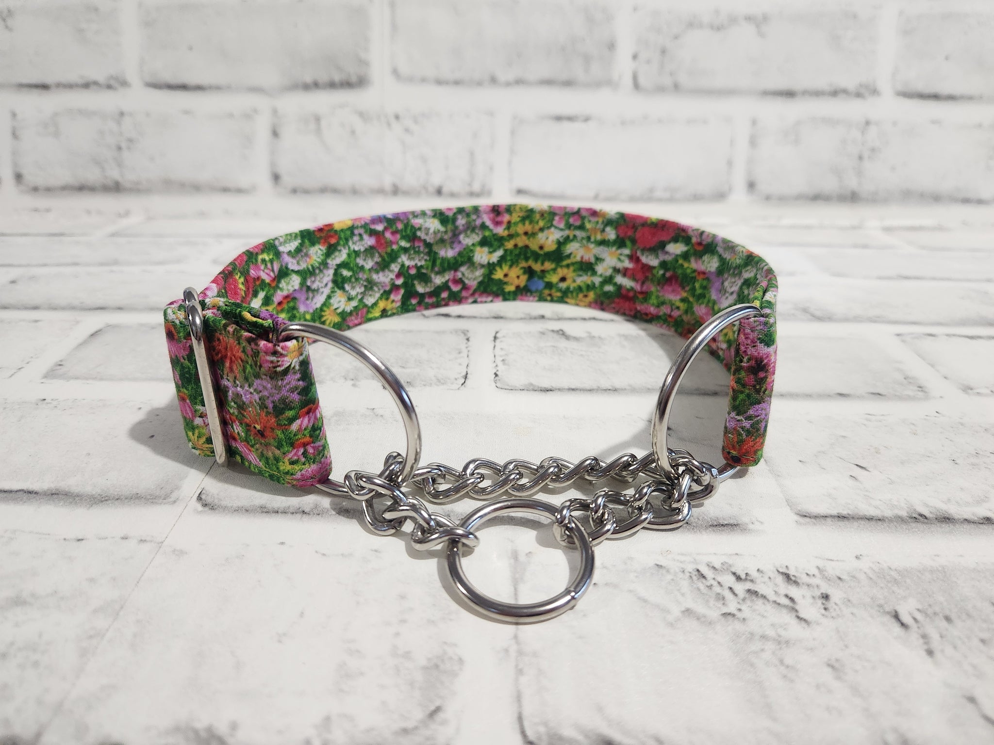 Wildflower Fields 1.5" Medium Chain Martingale Dog Collar 12"-19"