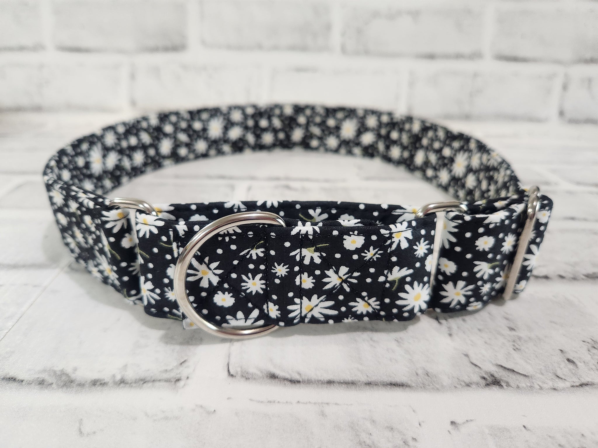 Daisies on Black 1.5" XL Martingale Collar 19"-28"