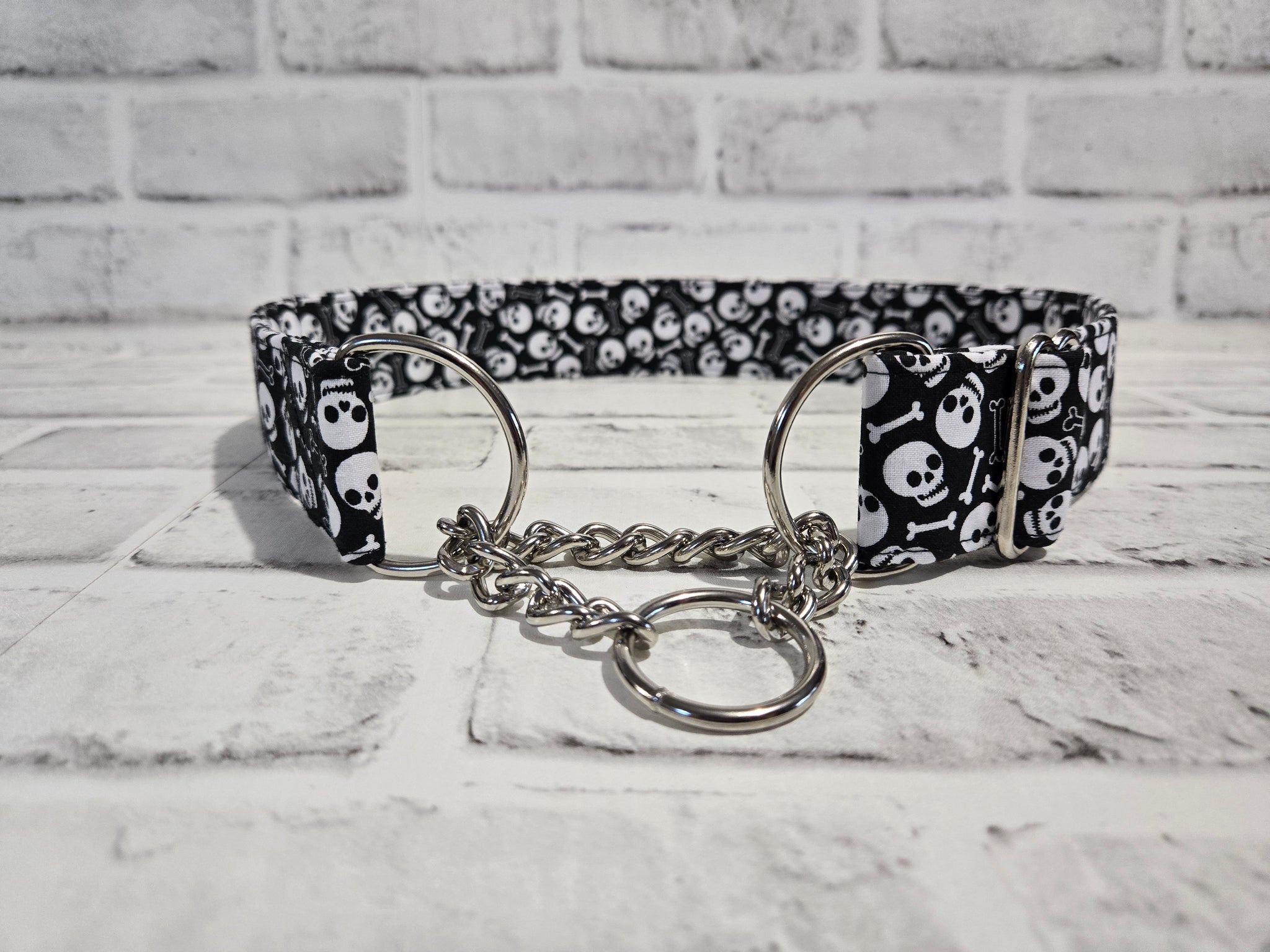 Skulls & Bones 1.5" XL Chain Martingale Collar 17"-28"