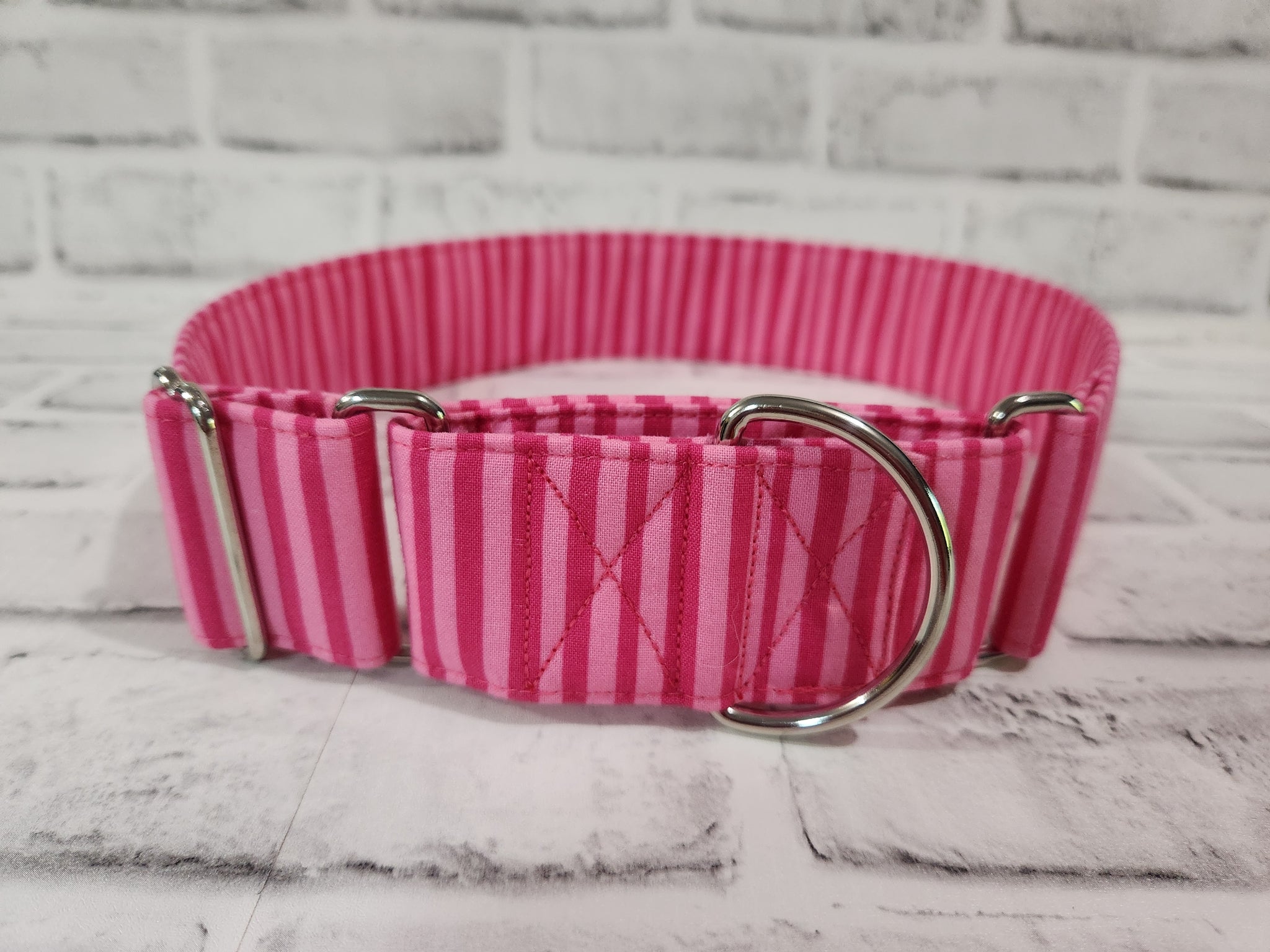 Pink Stripes 2" XL Martingale Dog Collar 17"-28"