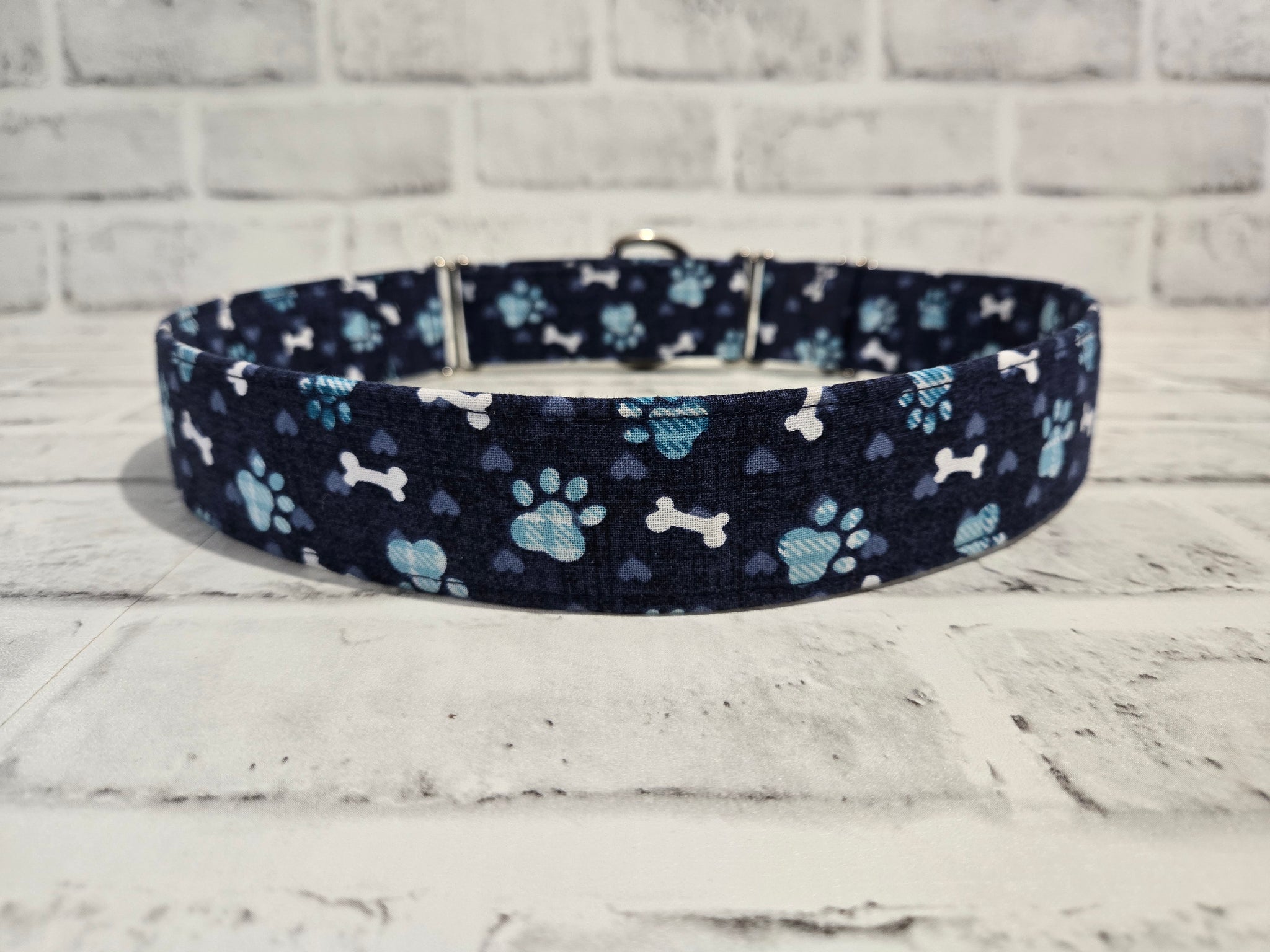 Paws & Bones Blue 1.5" XL Martingale Collar 19"-28"