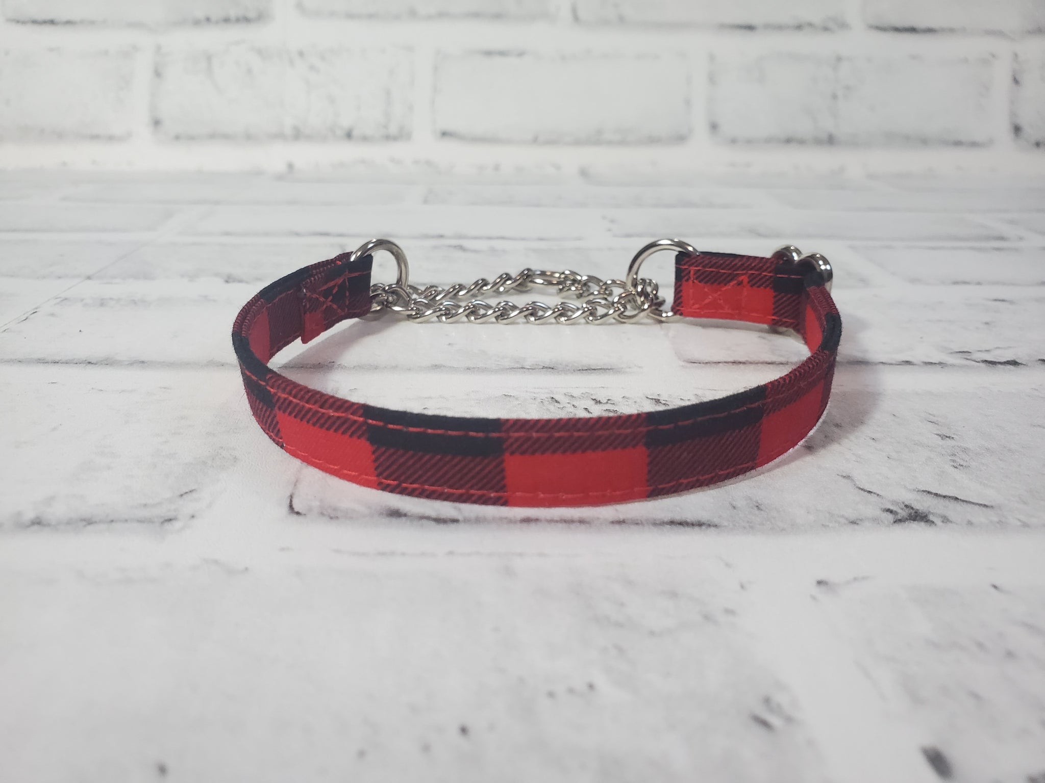 Buffalo Plaid 1/2" X-Small Chain Martingale Collar 9"-11"